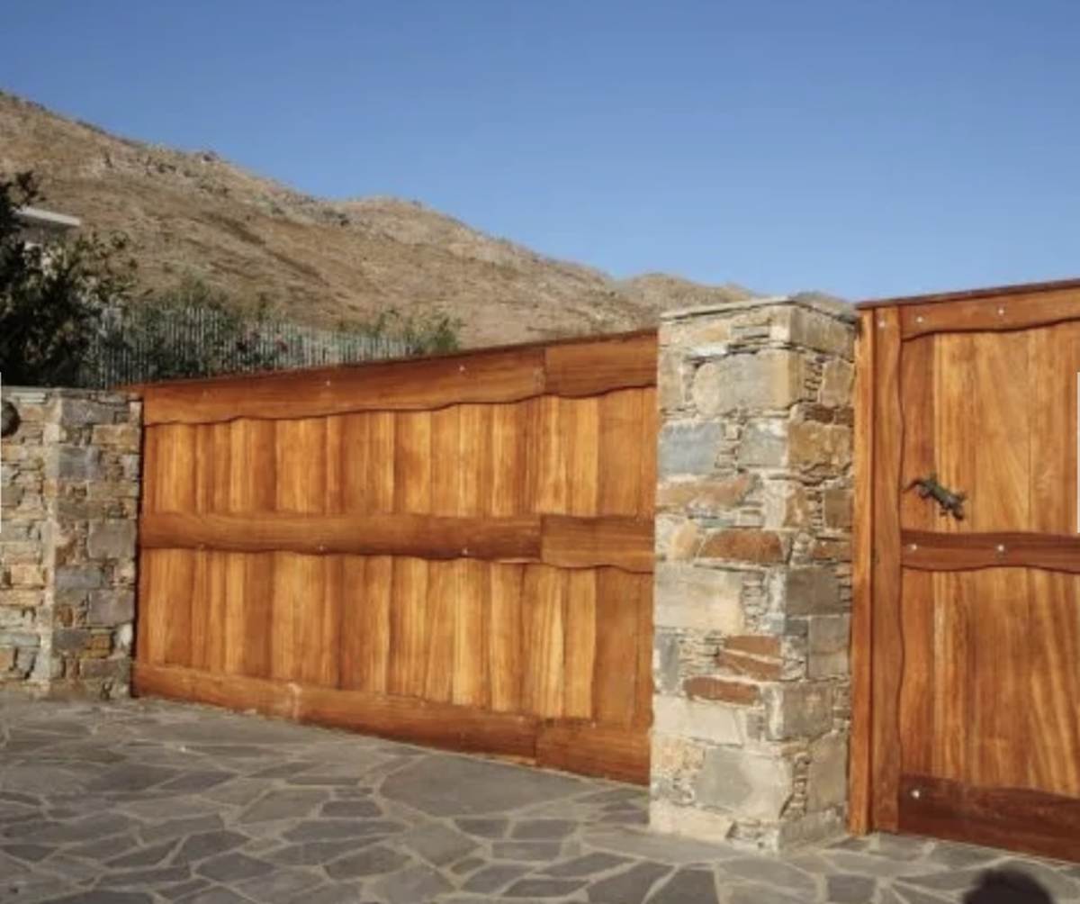 Η Κεντρική είσοδος είναι συρόμενη ξύλινη πόρτα με αυτόματο άνοιγμα.