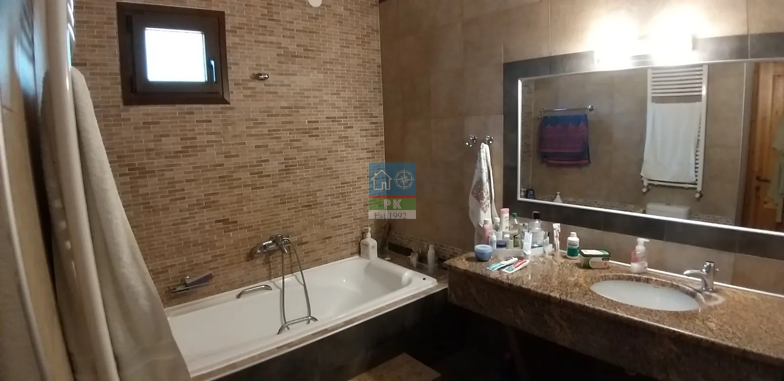 Τοιχοποιία: Η ηχομόνωση και η θερμομόνωση είναι άριστες. (πάχος τοίχου: 80 εκατοστά).