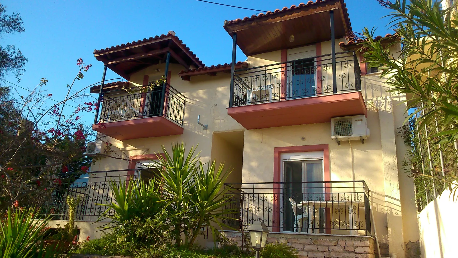 Αποτελείται από ένα κεντρικό κτίριο με 4 ανεξάρτητα διαμερίσματα. Το κάθε διαμέρισμα είναι περίπου 40 τετραγωνικών μέτρων, με 2 υπνοδωμάτια, κουζίνα, μπάνιο και μπαλκόνι, εξοπλισμένα με κλιματισμό, ηλιακό και είναι επιπλωμένα.