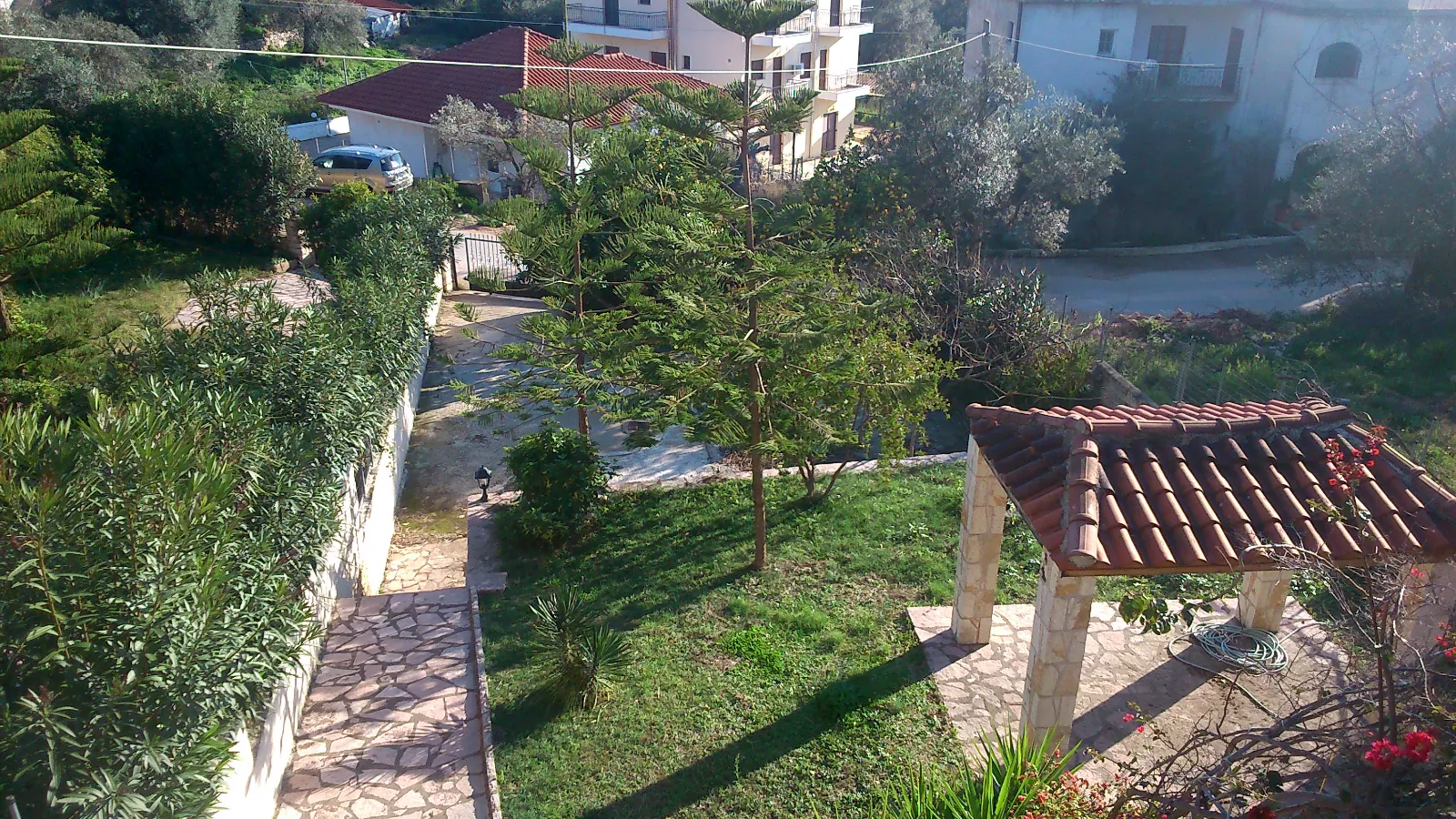 Το οικόπεδο είναι συνολικά 500 τετραγωνικά μέτρα, χωρισμένο σε τρία επίπεδα. Στο πρώτο είναι τοποθετημένο το προκάτ, στον δεύτερο ο κήπος με ένα κιόσκι και στο τρίτο επίπεδο το κεντρικό κτίριο.